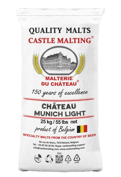 Солод насиченого золотого кольору. Злегка підвищує кольоровість пива, надаючи йому золотисто-помаранчевий відтінок. Більшості сортів пива надає яскраво виражений аромат зерна і солоду, не впливаючи при цьому на стійкість піни або на міцність. У невеликих кількостях в поєднанні з солодом Château Pilsen 2RS солод Château Munich Light використовується у виробництві світлих сортів пива для отримання більш тонкого букету і більш насиченого кольору. Підсилює смак пива «з